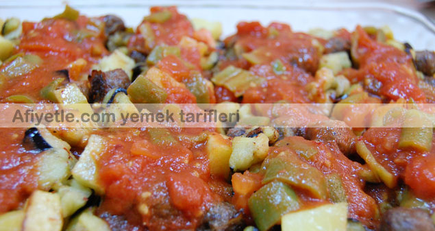 Eti 1-1,5 santimetreküp irilikte doğrayıp soğanla birlikte kısık ateşte ağzı kapalı olarak suyunu çekene kadar, yaklaşık 30 dakika pişirin. Salça,...