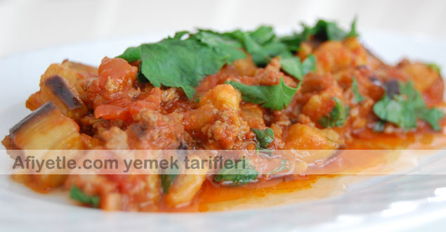 Patlıcanları iri iri doğrayın. Kızartın. Kıymayı ve soğanı kavurun. Patlıcanları tepsiye yerleştirin. Üzerine kıymayı ve soğanı dökün. Diğer s...