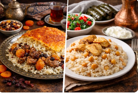 Yağ ve Lezzet Profili Azerbaycan Daha hafif yağlı Saflık ve pirinç aroması öne çıkar Türkiye Tereyağı baskındır Daha yoğun ve dolgun lezzet Yan Yemek (Üst–Alt Ayrımı) Azerbaycan Pilav sade yapılır Et, tavuk, meyveli soslar (gara) ayrı servis edilir Pilav + sos = tabakta birleşir Türkiye Et, sebze, nohut çoğu zaman pilavın içine girer