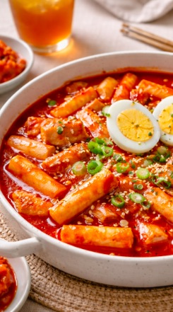 Tteokbokki (떡볶이), Kore mutfağına ait çok popüler bir sokak yemeğidir. Ana malzemesi pirinç keki (tteok) olan bu yemek, genellikle acı kırmızı biber sosu (gochujang) ile pişirilir. İçinde Neler Var?