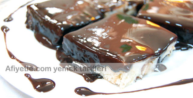 Yumurta ve şeker çırpılır. Diğer malzemeler de eklenip karıştırılır. Kalıba dökülür. O pişerken sos hazırlanır. Kek pişip soğuduktan sonra çatalla del...