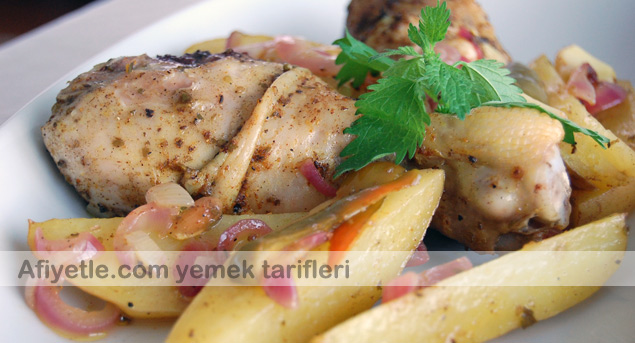 Tavuk kalçalarını iyice yıkayın ve tuz ve karabiber serperek baharatlandırın. Patates kabuğunu soyup yemeklik doğrayın.10 dakika bir tencerede bir...
