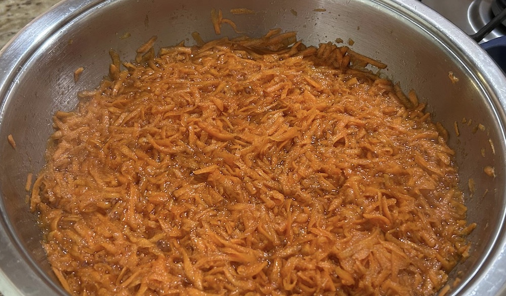 Havuçlar rendelendikten sonra bir tencereye şeker ile bereber konulur. Havuçlar iyice yumuşayıncaya kadar pişirilir. Havuçlar yumuşayıncaya kadar bisk...