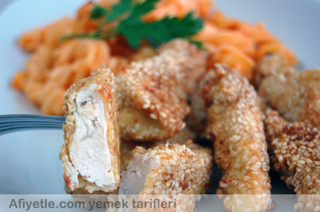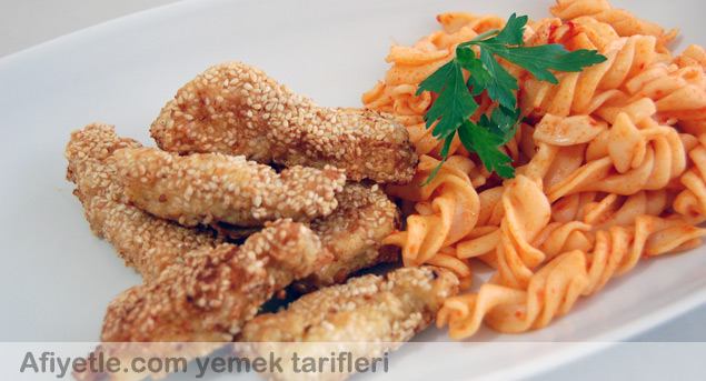 Fırını 190 derecede ısıtıp fırın tepsisine yağlı kağıt döşeyin.Tavuk etlerini uzun çubuklar halinde kesip tuz,karabiber ve kırmızıbiber serptikten son...