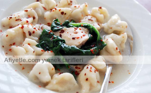 Tavuk iyice haşlanır ve ayrı bi kapta yoğurt ve un çırpılır. Haşlanan tavuk didiklenir ve mantı önceden haşlanmış, nohut didiklenmiş tavuklarla bir...