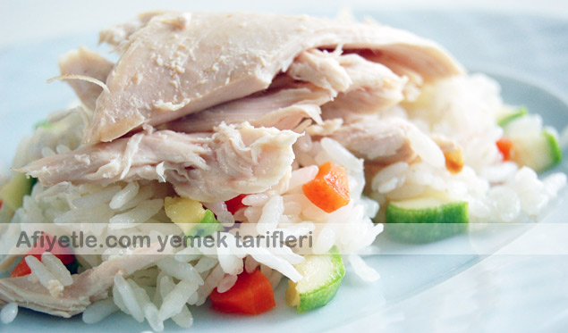 Pirinci ılık suda ıslatıp 20 dakika bekletin. Birkaç kez akan suyun altında yıkayıp süzün. Tavuk etlerini ufak bir tencerede 3.5 bardak su ile haşlayı...